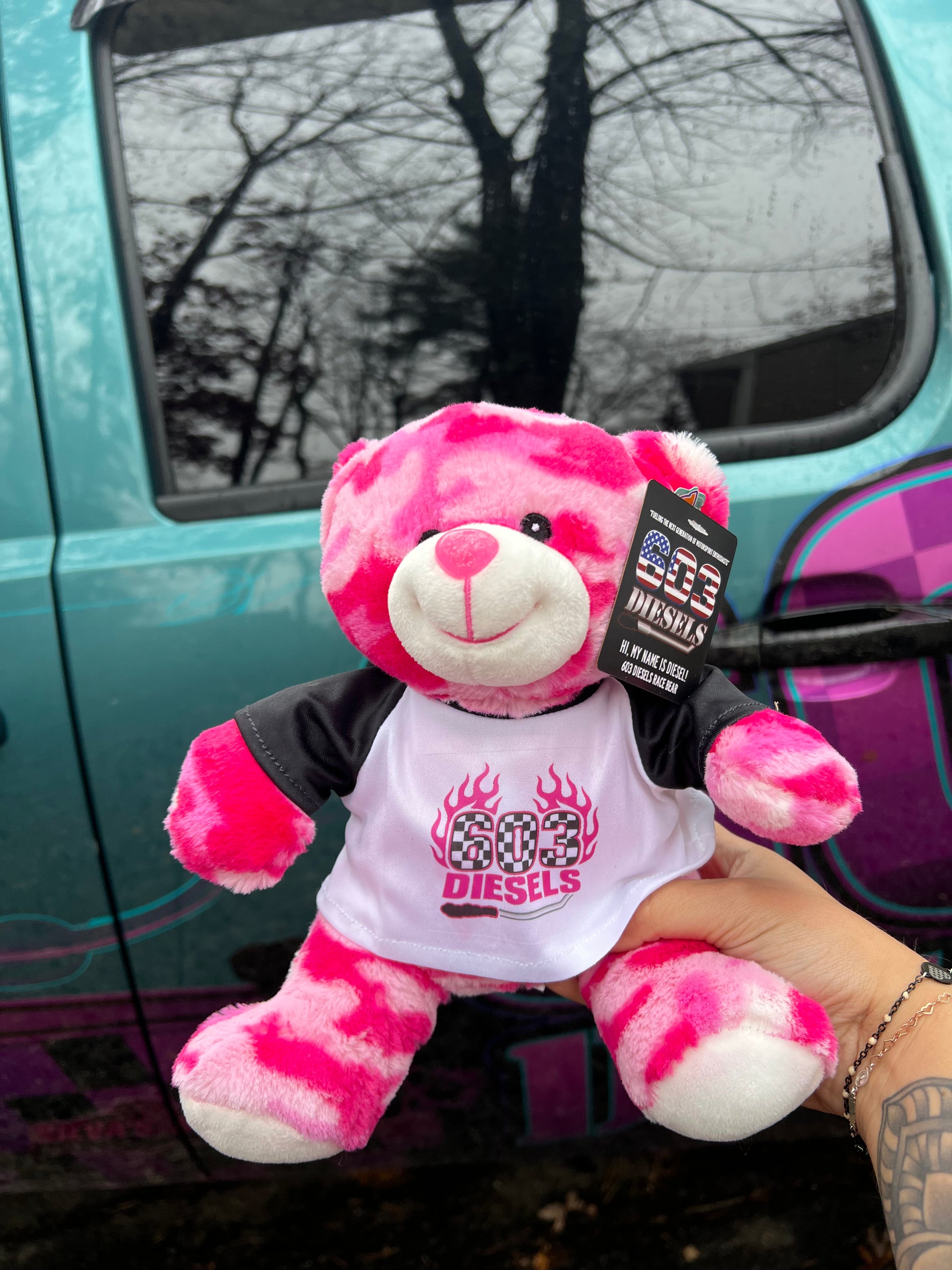 Meet Diesel our checkered race bear! He is 9” tall and loves sitting passenger in trucks or at the races!