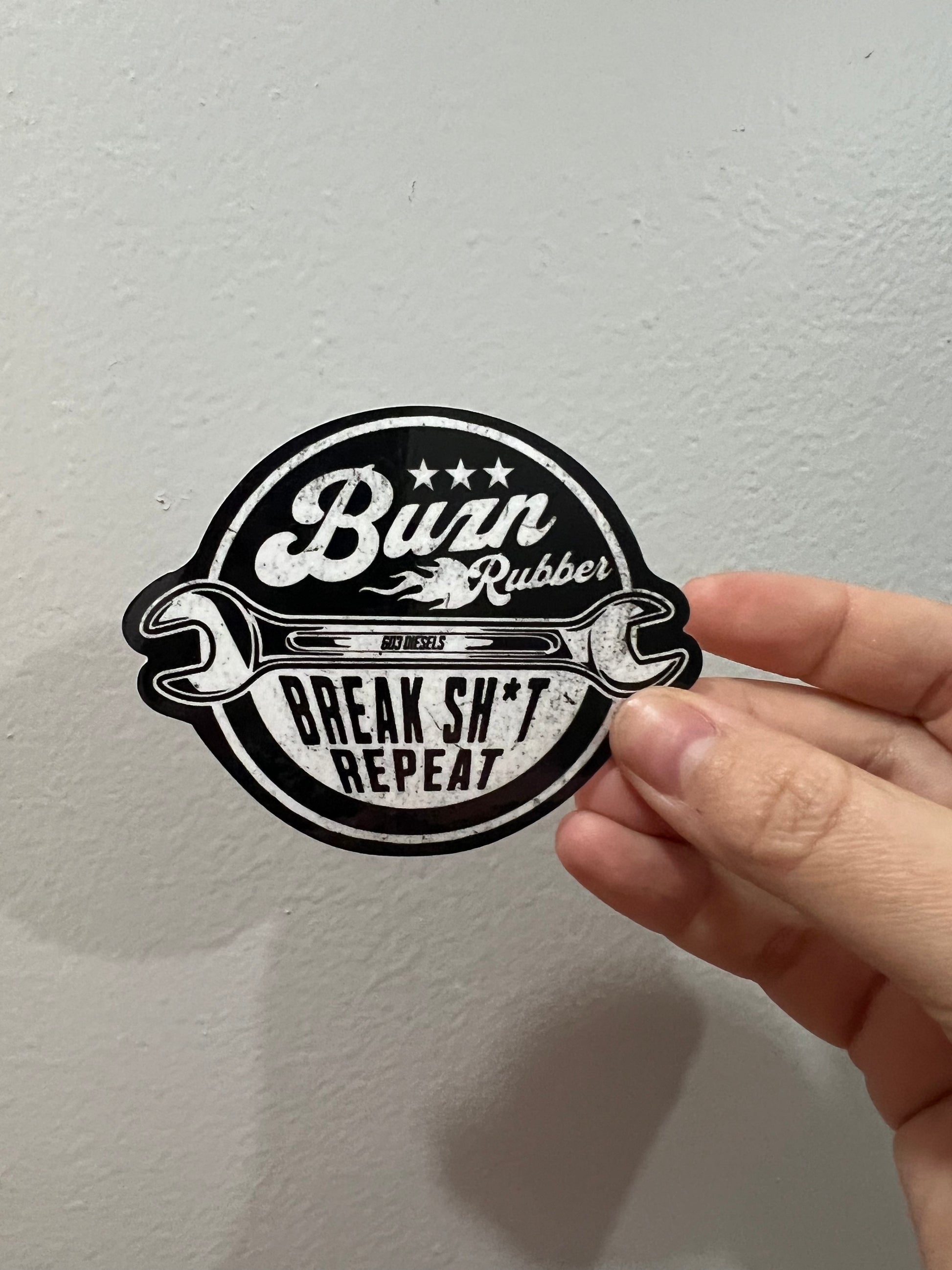 BURN RUBBER, BREAK SH*T, REPEAT STICKER